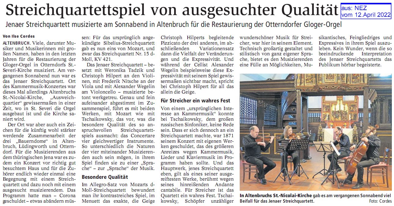Bericht in der Niederelbe Zeitung am 12.04.2022