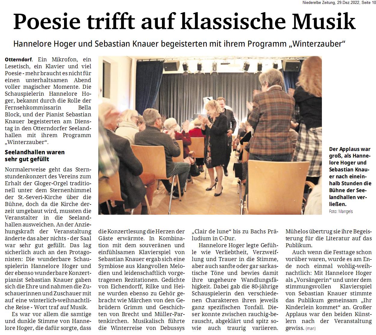 Hannelore Hoger und Sebastian Knauer begeisterten mit ihrem Programm „Winterzauber“